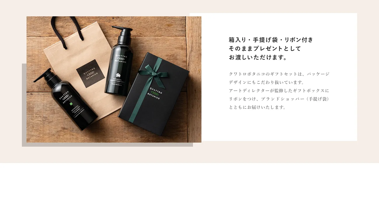 個別のギフト商品によって異なります。「ギフト」カテゴリーページをご参照いただき、各商品をご確認ください。